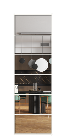 Минималистичный профиль повторяет форму профиля алюминиевых раздвижных перегородок Формато, что позволяет легко сочетать оба решения в одном пространстве.
